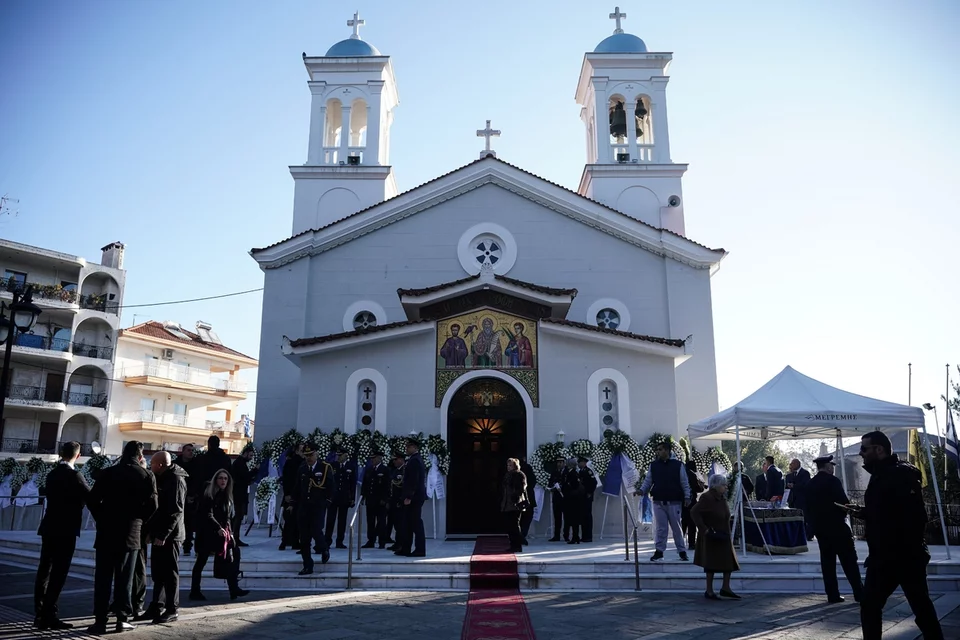 Στον Ιερό Ναό βρίσκονται από νωρίς ο αρχηγός ΓΕΑ, δήμαρχοι και βουλευτές, καθώς και ο υφυπουργός Εθνικής Άμυνας Νίκος Χαρδαλιάς. Περιμετρικά του ναού έχουν τοποθετηθεί στεφάνια από λευκά λουλούδια, στολισμένα με μπλε και λευκές κορδέλες, στα χρώματα της ελληνικής σημαίας. Στον Ιερό Ναό, εκτός από συγγενείς και φίλους του 29χρονου, το «παρών» δίνουν από νωρίς και απλοί πολίτες, οι οποίοι αφήνουν το δικό τους μήνυμα στο βιβλίο των συλλυπητηρίων και φωνάζουν «αθάνατος».