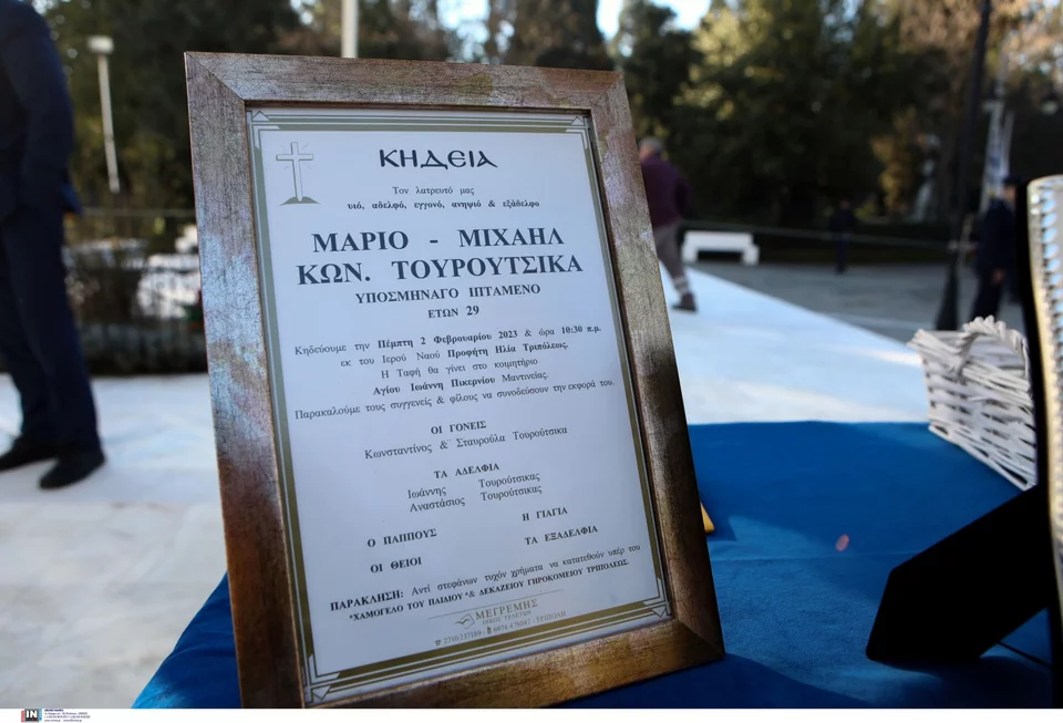 Στον Ιερό Ναό Προφήτη Ηλία Τριπόλεως συγγενείς και φίλοι λένε το τελευταίο «αντίο» στον υποσμηναγό Μάριο-Μιχαήλ Τουρούτσικα, ο οποίος έχασε τη ζωή του στην πτώση του μοιραίου Phantom ανοιχτά της Ανδραβίδας τη Δευτέρα (30/1).
